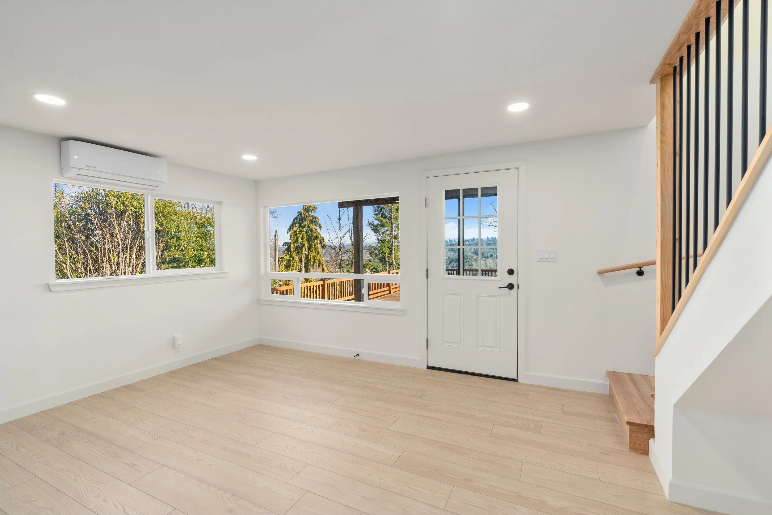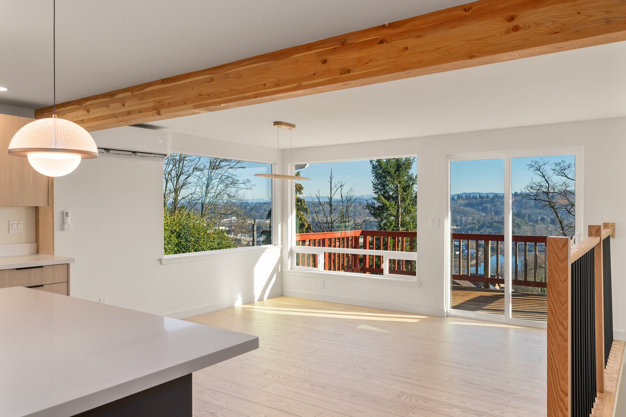 This ranch-style home, intended as a luxury rental, came with sweeping territorial views of the valley and Boeing Field, where Boeing 737s are assembled. We chose a Nordic / Scandinavian design approach to maximize views, space, and natural light. The style’s clean lines and pale color palette align naturally with ranch architecture, which emerged in the post-WWII era with an emphasis on efficiency, functionality, and practical floor plans.